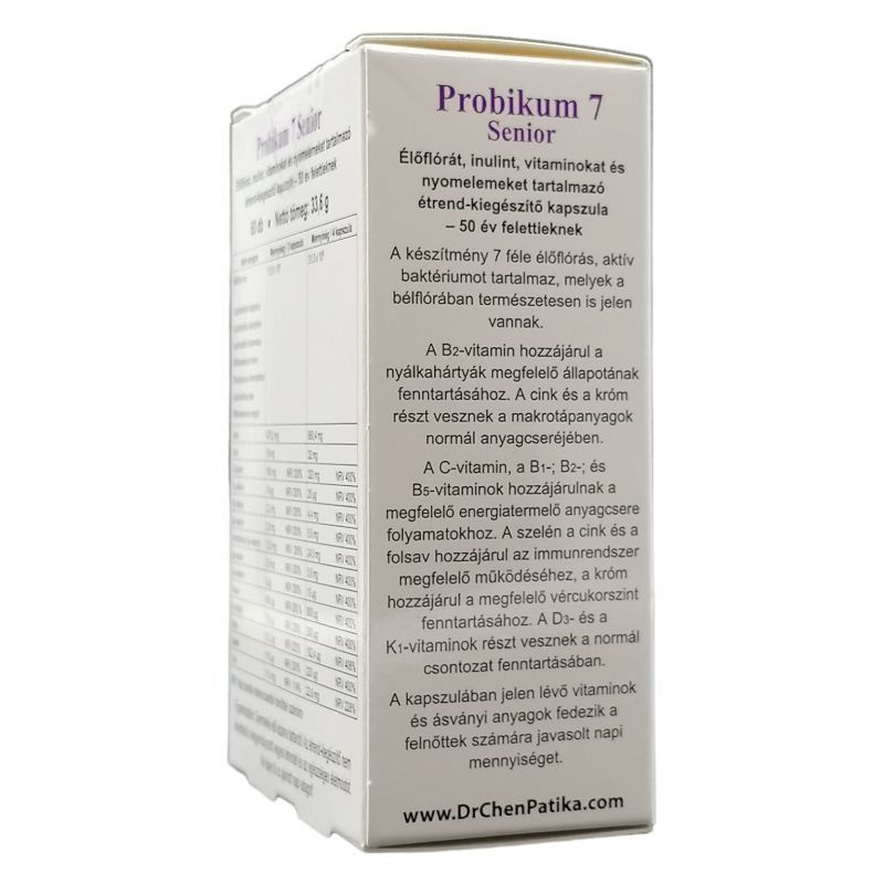 Élőflórát, inulint, vitaminokat és nyomelemeket tartalmazó étrend-kiegészítő kapszula - 50 év felettieknek.