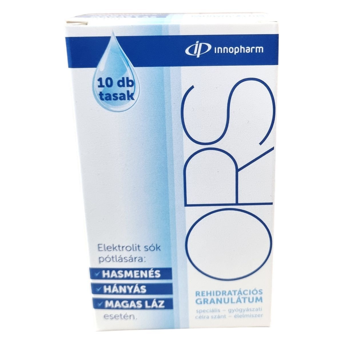 Az Innopharm ORS rehidratációs granulátum a WHO/UNICEF ajánlásával készült ásványi anyagokat tartalmazó ásványianyag- és elektrolit pótló granulátum. Vízben feloldva megfelel a WHO/UNICEF által előírt elektrolit sók pótlási mennyiségének és ozmolaritásának (245 mmol/liter). A termék összetevői segíthetik a fokozott folyadékvesztés, például hasmenés, hányás vagy izzadással járó magas láz esetén a szervezet ásványi anyag egyensúlyának helyreállítását. A feloldott oldat enyhén sós ízű. A termék nettó tömege 53,5 g, mely 10 darab 5,35 grammos tasakot tartalmaz.