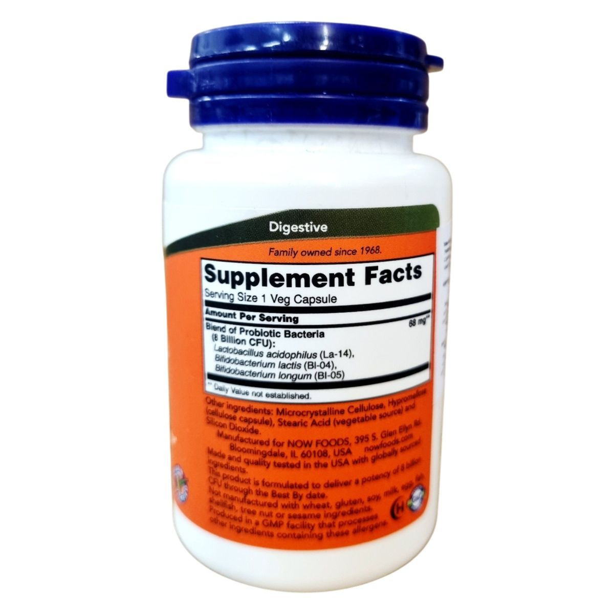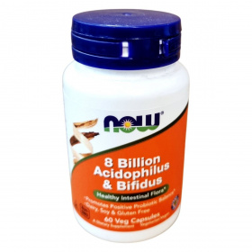 A NOW 8 Billion Acidophilus & Bifidus egy probiotikumot tartalmazó étrendkiegészítő kapszula, amely 8 milliárd CFU probiotikus baktériumot biztosít adagonként. A termék célja, hogy támogassa az egészséges bélflóra fenntartását, hozzájárulva a pozitív probiotikus egyensúlyhoz. A kapszula vegetáriánus és vegán étrendbe is beilleszthető, valamint gluténmentes. A termék nem tartalmaz tejet, szóját, tojást, halat, kagylót vagy szezámmagot, de nyomokban tartalmazhatja ezeket. A NOW FOODS által gyártott termék GMP minősítéssel rendelkezik, és az USA-ban készült, globálisan beszerzett összetevőkből.