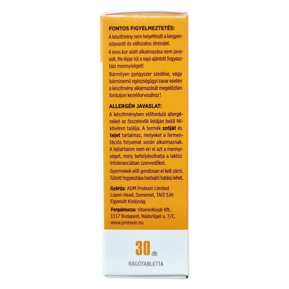 A Protexin® JUNIOR + C étrend-kiegészítő 7-féle élő baktériumtörzset és C-vitamint tartalmaz. A C-vitamin a napi beviteli referenciaérték 100%-át biztosítja két tablettában, mely hozzájárulhat az immunrendszer normál működéséhez. A termék édesítőszerrel és szőlőcukorral készül narancs és vanília aromával ízesítve. Allergének közül szója és tej található meg a fermentáció során felhasznált anyagok között, de a tej mennyisége nem befolyásolja azokat, akik laktózintoleranciában szenvednek. A termék nem alkalmas 4 év alatti gyermekek számára, és nem helyettesíti a változatos étrendet. A doboz 30 db rágótablettát tartalmaz, melynek nettó tömege 15,9 g. A Protexin® márkanév és PXN® védjegyek az ADM Protexin Limited tulajdonát képezik.