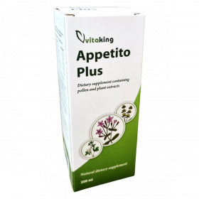 Az Appetito Plus egy természetes étrend-kiegészítő, amely pollen és különböző növényi kivonatokat tartalmaz. A termék célja, hogy támogassa az étvágyat és az emésztési folyamatokat. A görögszéna mag hozzájárulhat az étvágyhoz és segíthet fenntartani az egészséges életmód részeként a normál vércukorszintet. A sárga tárnicsgyökér segítheti az emésztést. A termék használata előtt felrázandó, és a napi ajánlott mennyiséget nem szabad túllépni. A termék nem helyettesíti a vegyes étrendet és az egészséges életmódot.