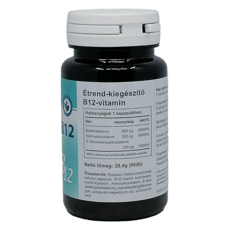 A B12-vitamin kapszula elengedhetetlen az idegrendszer védelméhez és a megfelelő energiaellátáshoz. Támogassa agyának egészségét e nélkülözhetetlen vitamin segítségével!