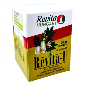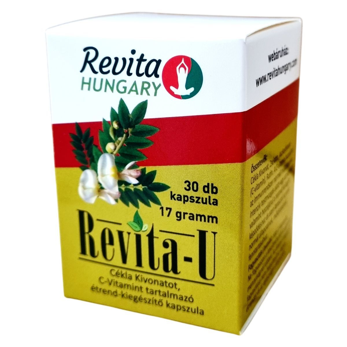 A Revita-U kapszula az Európai Unióban készül. A termék fő összetevője a céklakivonat, valamint a C-vitamin és rutin. A C-vitamin hozzájárulhat az immunrendszer normál működéséhez intenzív testmozgás alatt vagy azt követően, továbbá a normál kollagén képződéséhez, ezáltal támogathatja az erek normál állapotát és működését. A kapszulák zselatinból készülnek, és a minőség megőrzése érdekében a doboz alján feltüntetett ideig ajánlott fogyasztani. A termék használata kiegészítheti az egészséges életmódot, de nem helyettesíti a változatos, kiegyensúlyozott étrendet.