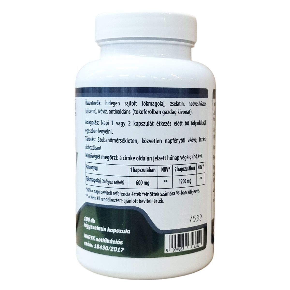 Tökmagolaj (hidegen sajtolt): 600 mg (1 kapszulában), 1200 mg (2 kapszulában)