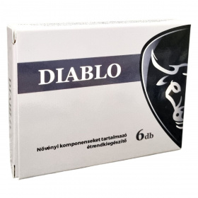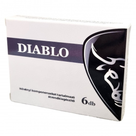 A Diablo növényi kivonatokból készült étrendkiegészítő kapszula, amely többféle gyógynövény aktív összetevőjét tartalmazza, és a kiegyensúlyozott táplálkozás részeként alkalmazható.