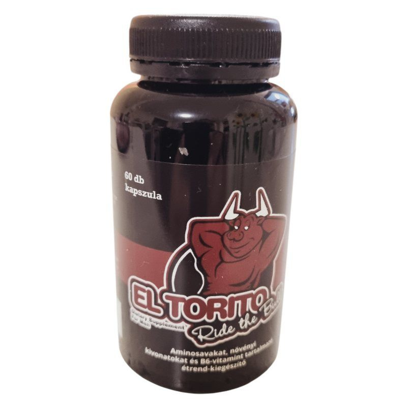 Az El Torito étrend-kiegészítő kapszula aminosavakat (L-arginin, citrullin-malát), növényi kivonatokat (ázsiai ginzeng, Rhodiola rosea) és B6-vitamint tartalmaz. A ginzeng hozzájárulhat a fáradtság csökkentéséhez, a libidó és az állóképesség támogatásához, valamint a kognitív funkciók fenntartásához. A Rhodiola kivonat segíthet a stressz kezelésében, míg a fekete bors kivonat piperintartalmával fokozhatja a tápanyagok hasznosulását. A B6-vitamin hozzájárul a normál energiatermelő anyagcsere-folyamatokhoz, az idegrendszer normál működéséhez, a fáradtság és kifáradás csökkentéséhez.