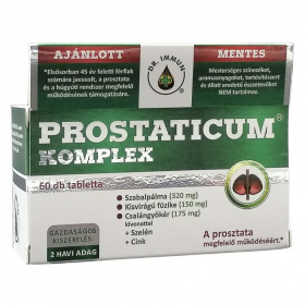 Készítményünk gazdag a prosztata számára jótékony összetevőkben. Tudományos kutatások alátámasztják, hogy: a szabalpálma kivonat elősegítheti a normális vizeletáramlást és a prosztata egészségének megőrzését. A kisvirágú füzike kivonat hozzájárulhat a húgyúti rendszer megfelelő működéséhez. A csalángyökér kivonat hozzájárulhat a prosztata egészségéhez. A cink szerepet játszik a normál termékenység és szaporodás fenntartásában, hozzájárul a vér normál tesztoszteronszintjének fenntartásához. A szelén részt vesz a normál spermaképződésben. Kedvező ár - 2 havi adag - magas ár-érték arány! Adagolás: Felnőtt férfiaknak naponta 1 tablettát bő folyadékkal lenyelni.