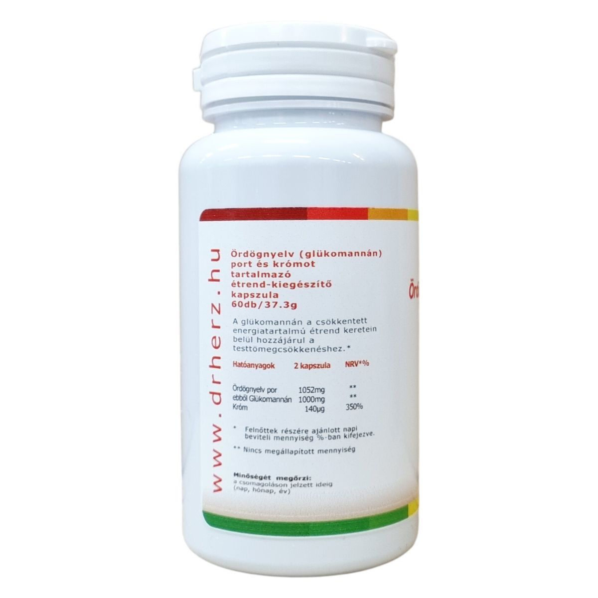 Az Ördögnyelv Forte 500mg kapszula glükomannán tartalmú porból és króm-kloridból készül, melyek együttesen egészséges étrend mellett hozzájárulhatnak a testtömeg csökkenéséhez. A kapszulák bevételét bőséges folyadékkal ajánljuk, mert a glükomannán akkor fejtheti ki hatását, ha vízzel jut a gyomorba. A napi javasolt adag 2 kapszula, amely 30 napi adagnak felel meg. Fontos figyelembe venni, hogy a megfelelő napi glükomannán bevitel 3 gramm, melyet akár három egyenként 1 grammos adagban is be lehet venni. Az étrend-kiegészítő nem helyettesíti a kiegyensúlyozott étrendet és életmódot, és a termék gyermekek elől elzárva tartandó.