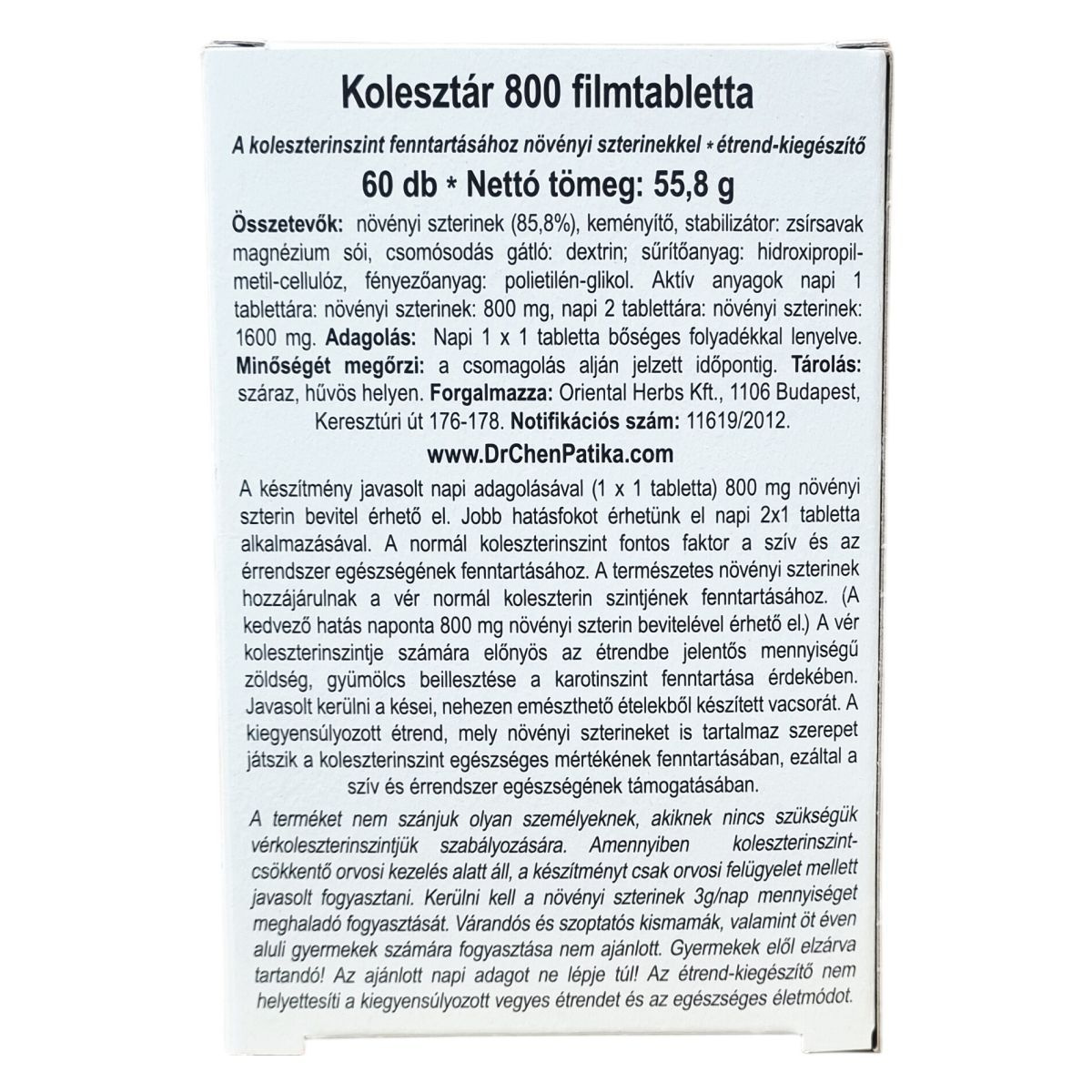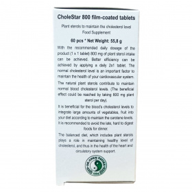 A KoleSztár 800 filmtabletta a normál koleszterinszint fenntartásához készült, aktív hatóanyaga napi egy tabletta esetén 800 mg növényi szterin. Hatékonyabb hatás érhető el napi két tabletta szedésével. A kiegyensúlyozott étrend, részben zöldségek és gyümölcsök rendszeres fogyasztásával, valamint a kései és nehezen emészthető vacsorák kerülésével elősegítheti a koleszterinszint egészséges szinten tartását, ami elengedhetetlen a szív és az érrendszer jó működéséhez. A készítmény fogyasztása mellett fontos megjegyezni, hogy nem helyettesíti a vegyes étrendet és az egészséges életmódot.