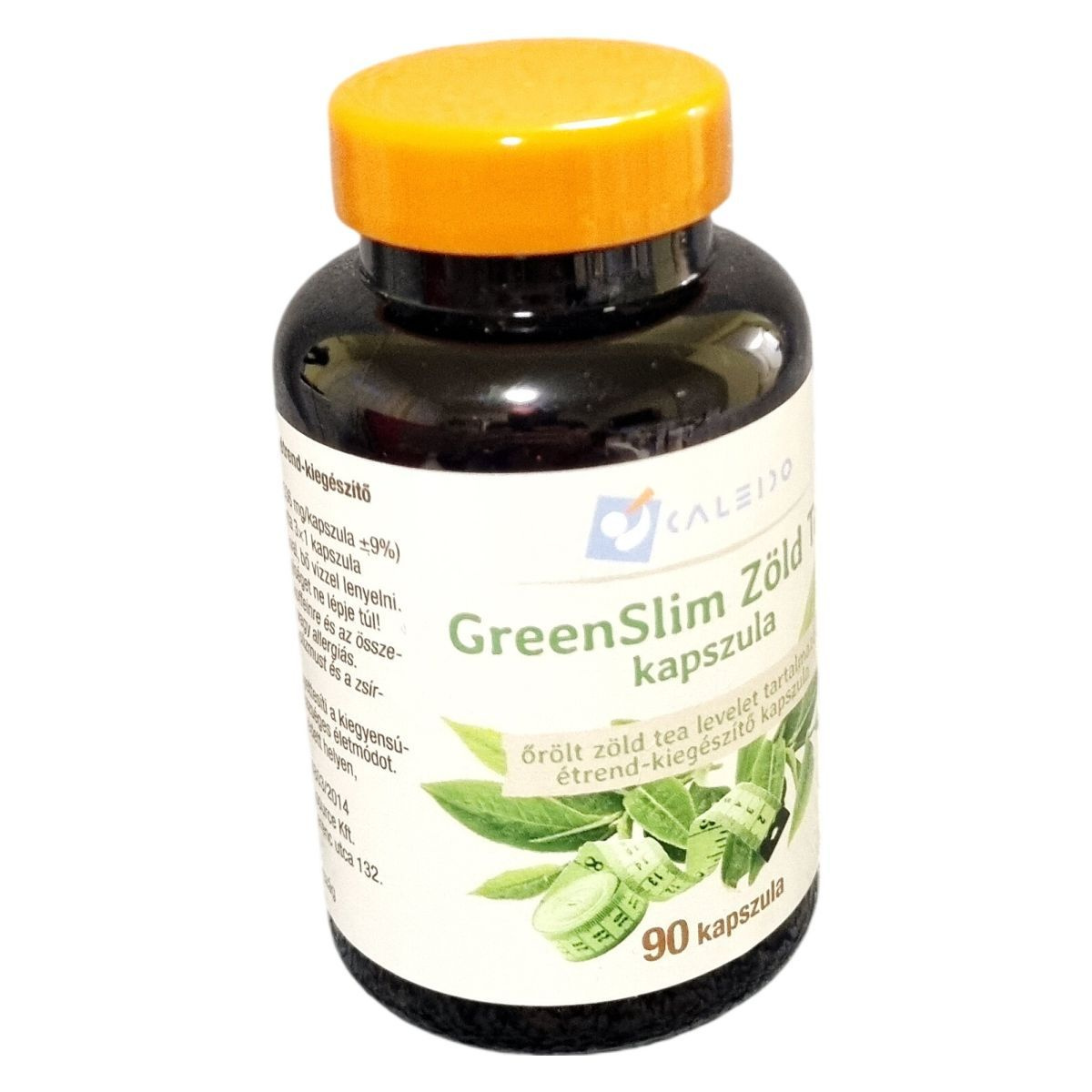A Caleido GreenSlim zöld tea étrend-kiegészítő kapszula nettó tömege 48,2 g, mely 90 darab, egyenként 536 mg tömegű kapszulát tartalmaz. A termék származási helye Spanyolország. A kapszulahéj szarvasmarha zselatinból készül. Az alkalmazási javaslat szerint a kapszulákat a főétkezések előtt, kb. fél órával kell bevenni, bő vízzel. A termék olyan hatóanyagokat tartalmaz, amelyek támogathatják a szervezet metabolizmusát és a zsíranyagcserét, azonban nem helyettesíthetik az egészséges életmódot és a kiegyensúlyozott táplálkozást.
