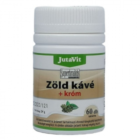 A zöld kávé kivonat nagy mennyiségben tartalmaz klorogénsavat (50%) és koffeint (9%). A termékben lévő króm részt vesz a makrotápanyagok normál anyagcseréjében és hozzájárul a normál vércukorszint fenntartásához. Sok hasonló termékkel ellentétben a JutaVit Zöld Kávé tabletta nem egyszerűen a kávé porított változatát (őrleményét), hanem annak kivonatát tartalmazza, mely a növény értékes részének 12-15-szörös koncentrátuma.