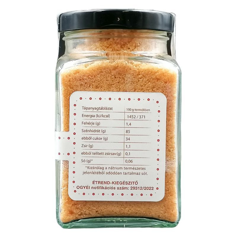 Tápanyagtáblázat (100 g termékben): Energia: 1553 kj/371 kcal, fehérje: 1,4 g, szénhidrát: 85 g -ebből cukor: 34 g, zsír: 1,1 g -ebből telített zsírsav: 0,1 g, só: 0,06 g.