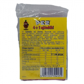 Cseresznye, narancs, eper és málna ízű szőlőcukor alapú cukorkák a PEZ figurák utántöltésére.