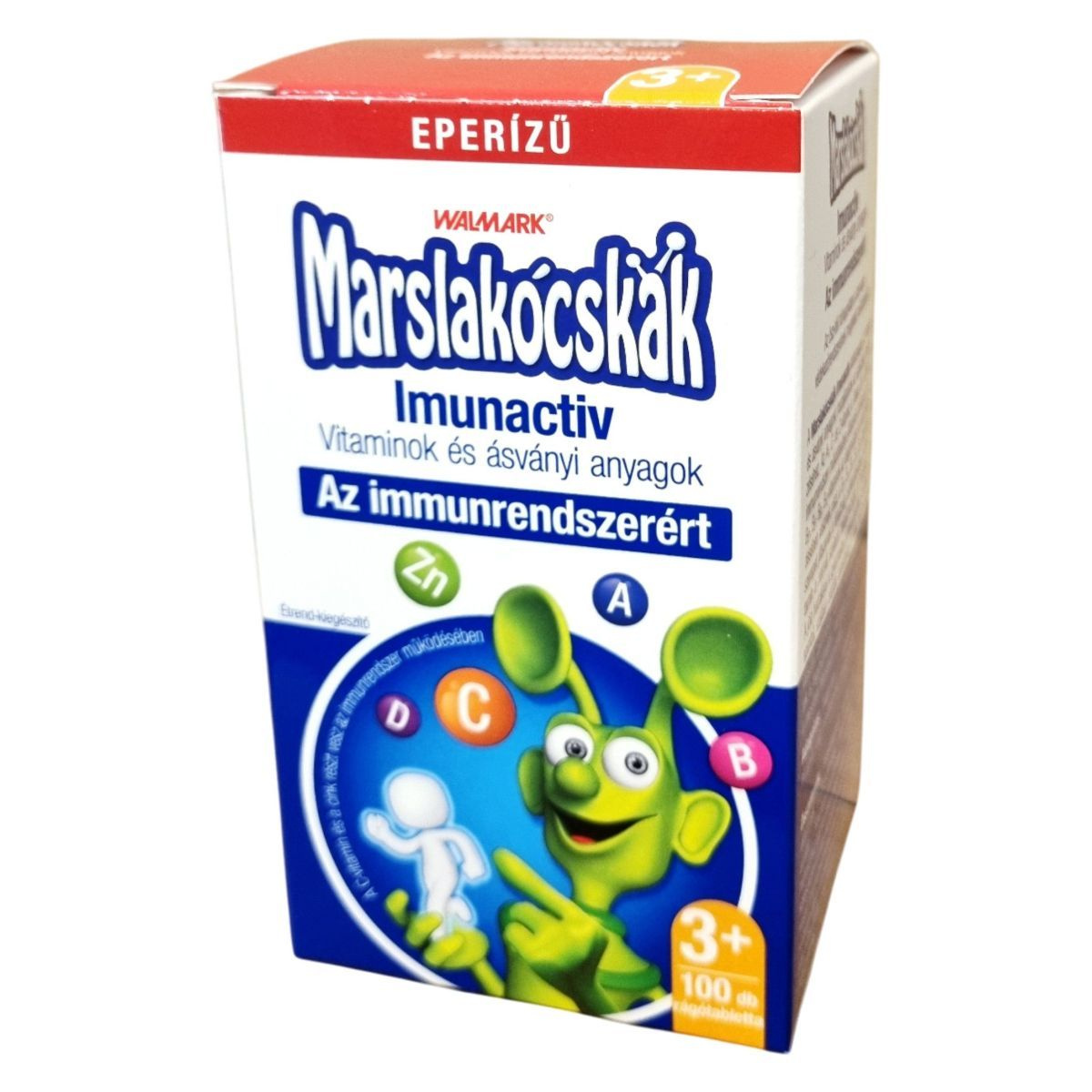 A Marslakócskák Imunactiv hatóanyagai – 12 vitamin és ásványi anyag – hozzájárulnak az egészség megőrzéséhez. Az A-, C- és D-vitamin, a folsav és a cink az immunrendszer működésében játszanak szerepet. A B₁-, B₂-, B₃-, B₅-, B₆-, B₁₂-vitaminok az idegrendszer normál működéséhez járulnak hozzá, és segítik a fáradtság csökkentését, valamint a szellemi teljesítményt. A jód hozzájárul a gyermekek növekedéséhez. A kis méretű, eperízű, szájból oldódó tablettákat 3 éves kortól ajánlják.