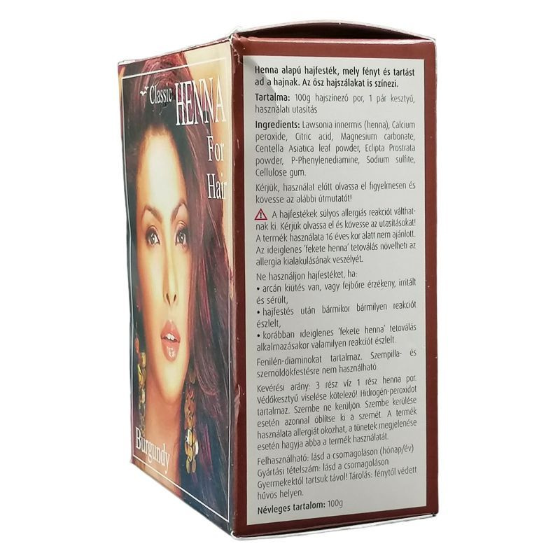 Természetes fényű és erős haj, nincs többé hajhullás és korpa, selymes és dús tapintás. A kémiai hajfestékek gyorsan és tökéletesen befedik hajszálainkat. Ez egy fontos szempont a mai rohanó világban. Azonban talán Ön is hallott arról, hogy több kellemetlenséget is okozhatnak. Néhány év után sokan töredezett, fakó és sok esetben hulló hajszálakkal szembesülnek. Amennyiben Ön is szenved ezektől a problémáktól, alternatívát jelentenek a Classic Henna hajfestékek. A Classic Henna hajfestékek az 50-60% hennán kívül szintetikus színezőket is tartalmaznak az erősebb színező hatás érdekében. Így az ősz hajszálakat hatékonyabban el tudják tüntetni. A fekete és a sötétbarna ugyanolyan színűre festi az ősz hajszálakat, mint az eredetit.