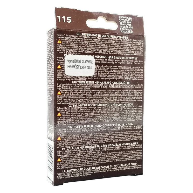 Biztonságos formula - ammónia és oxidánsok nélkül! Porított hennalevelet tartalmaz, gyönyörű, ragyogó színt ad a hajnak. Intenzíven táplálja a hajat, 6-8 mosásig tartó hajszínt biztosít. Természetes hatóanyagú gyógynövényekből készült, ammóniamentes hajszínező por. A gyógynövénykivonatok ápolják és óvják a hajat festés közben, a henna kivonat pedig gondoskodik az egészséges csillogásról, intenzív színélményt nyújt.