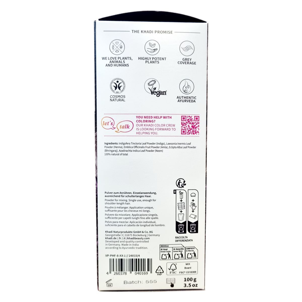 Természetes növényi hajfesték, mely mély, fénylő sötétbarna színt biztosít, intenzív és tartós fedést kínál, még ősz haj esetén is, ayurvédikus ápolással.