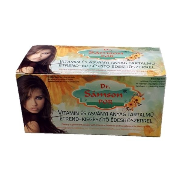 Hajhullásra, hajnövesztésre, hajvastagításra, kopaszodás ellen, a hajhagymák regenerálására szolgáló vitamin és ásványi anyag tartalmú étrend-kiegészítő por.