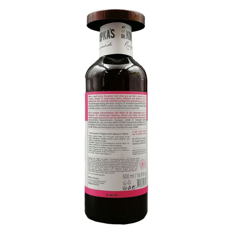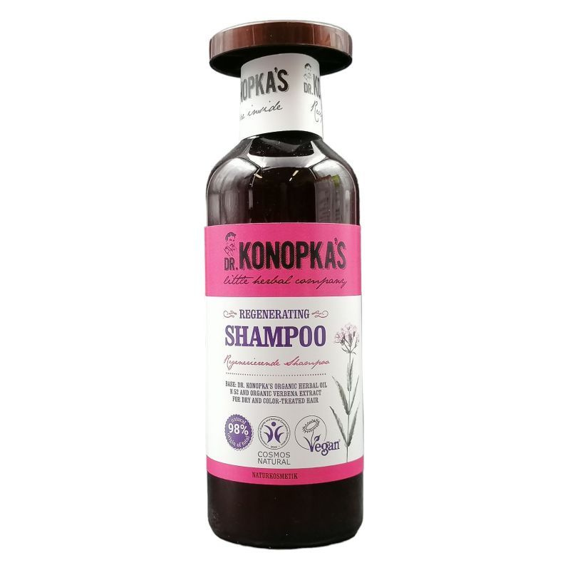 Száraz, festett hajra kifejlesztett sampon, mely hidratálja, táplálja és revitalizálja a hajat. A haj szerkezetét javító és a hajnövekedést stimuláló bio vasfűkivonatot, valamint a Dr. Konopka különleges, növényi eredetű, 52. számú bio hajolaját tartalmazza. BDIH minősítésű, vegán termék. Dr. Konopka eredeti gyógynövényeken alapuló bőr-, haj- és szépségápolási receptjei több évtized után most életre kelnek a modern technológia segítségével!