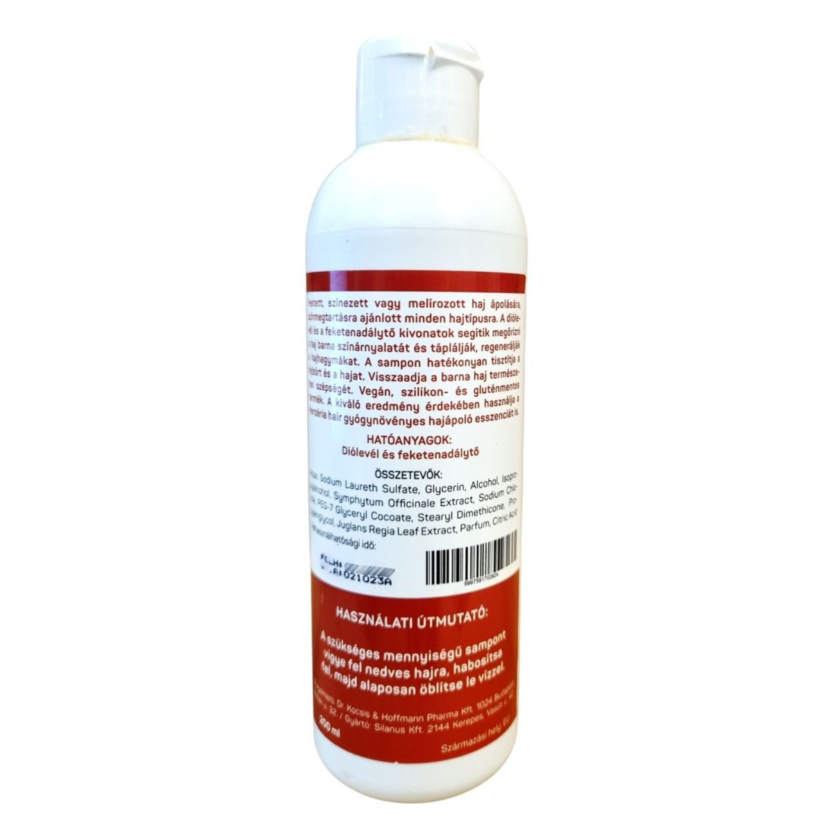 A sampon diólevél- és feketenedálytő-kivonata segíthet megőrizni a barna haj színét, ápolhatja a hajhagymákat és hozzájárulhat a fejbőr tisztaságához.