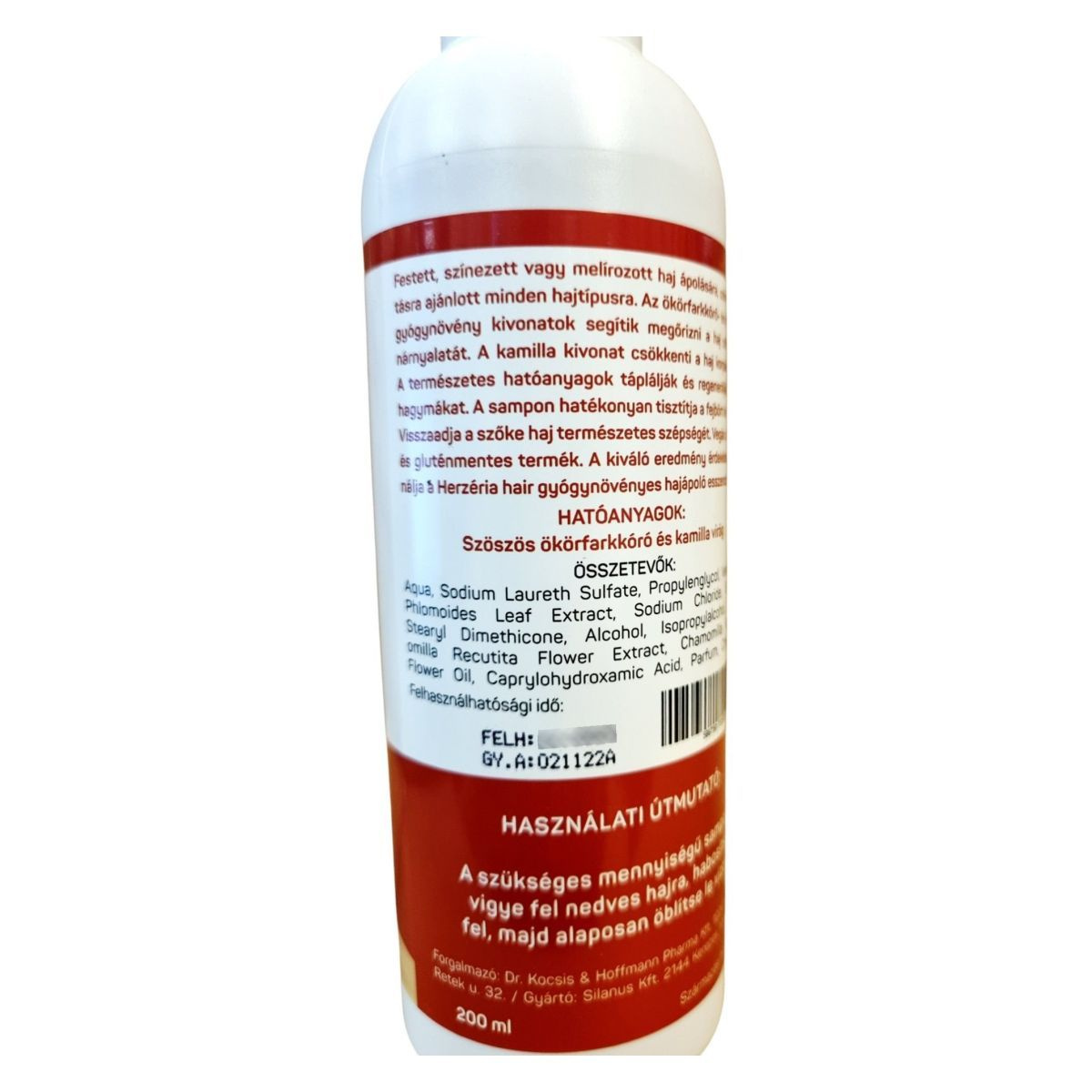 A HERZÉRIA Gyógynövényes SZÍNÁPOLÓ SAMPON kifejezetten szőke hajra lett kifejlesztve, hogy segíthessen megőrizni a haj színének természetes fényét. Az ökörfarkkóró- és kamilla kivonatok hozzájárulhatnak a haj ápolásához és a korpásodás csökkentéséhez. A sampon hatékonyan tisztíthatja a fejbőrt és a hajat, miközben táplálhatja és regenerálhatja a hajhagymákat. A termék vegán, szilikon- és gluténmentes, így különböző étrendi igényeknek is megfelelhet. A legjobb eredmény érdekében javasolt a Herzéria hair gyógynövényes hajápoló esszencia használata is.