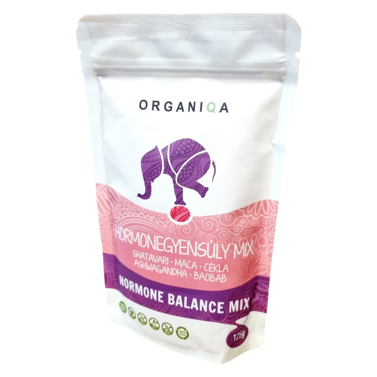 A HORMONEGYENSÚLY MIX egy 100% bio növényi keverék, amely shatavari, maca, cékla, ashwagandha és baobab porokat tartalmaz. Ezek az összetevők hozzájárulhatnak a hormonális egyensúly támogatásához.