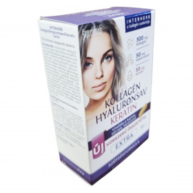 Az INTERHERB Kollagén&Hyaluronsav&Keratin Extra étrend-kiegészítő tabletta megújult, korszerű összetételével a haj, a bőr és a köröm egészségének, szépségének megőrzésére lett kifejlesztve. A kollagén, keratin és hyaluronsav tartalommal rendelkező formula hozzájárulhat a bőr struktúrájának, hidratáltságának fenntartásához, valamint a hajszövet felépítéséhez. A C-vitamin, cink, szelén és réz szerves vegyületek formájában támogatják a haj, bőr és köröm normál állapotát. A termék hidrolizált kollagén kivonatot tartalmaz, amely szarvasmarha eredetű, valamint hidrolizált keratint, amely birka eredetű. Az Acerolából kivont természetes C-vitamin hozzájárulhat a megfelelő kollagén képződéséhez.