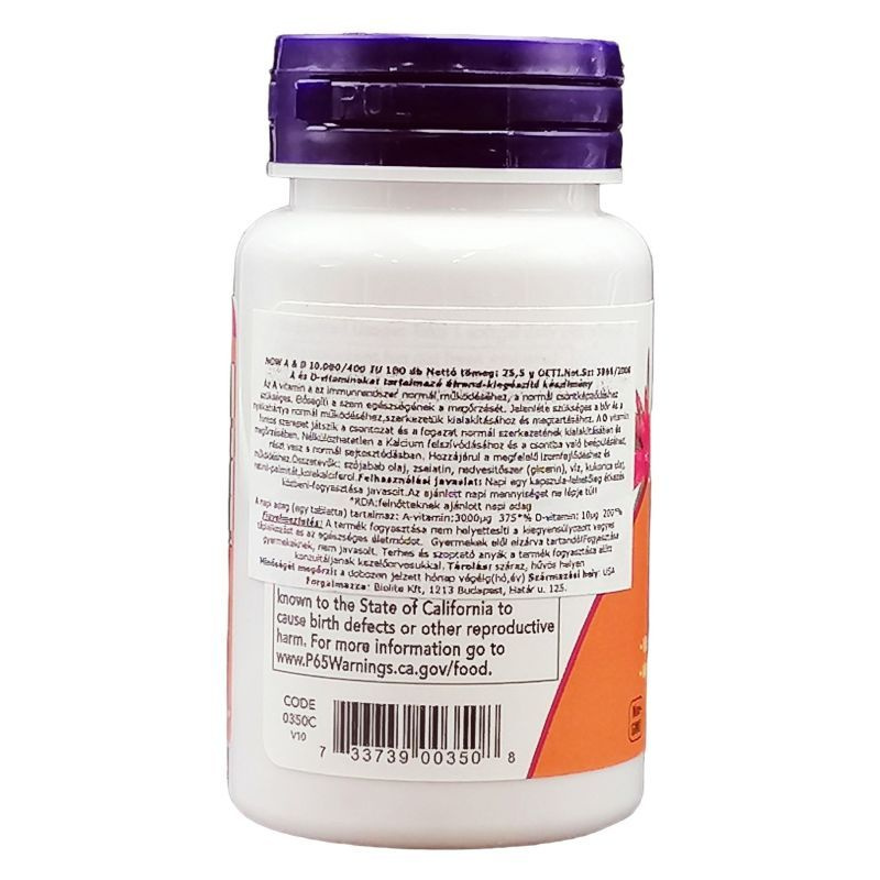 Figyelmeztetés: Jelen termék alkalmazása előtt terhes nők vagy szoptatós anyák kérjék ki a kezelőorvosuk tanácsát. Ne lépjük túl a napi egy adagot a kezelőorvos megkérdezése nélkül. Hatóanyagok: A-vitamin: 10,000 IU, D3-vitamin: 400 IU.