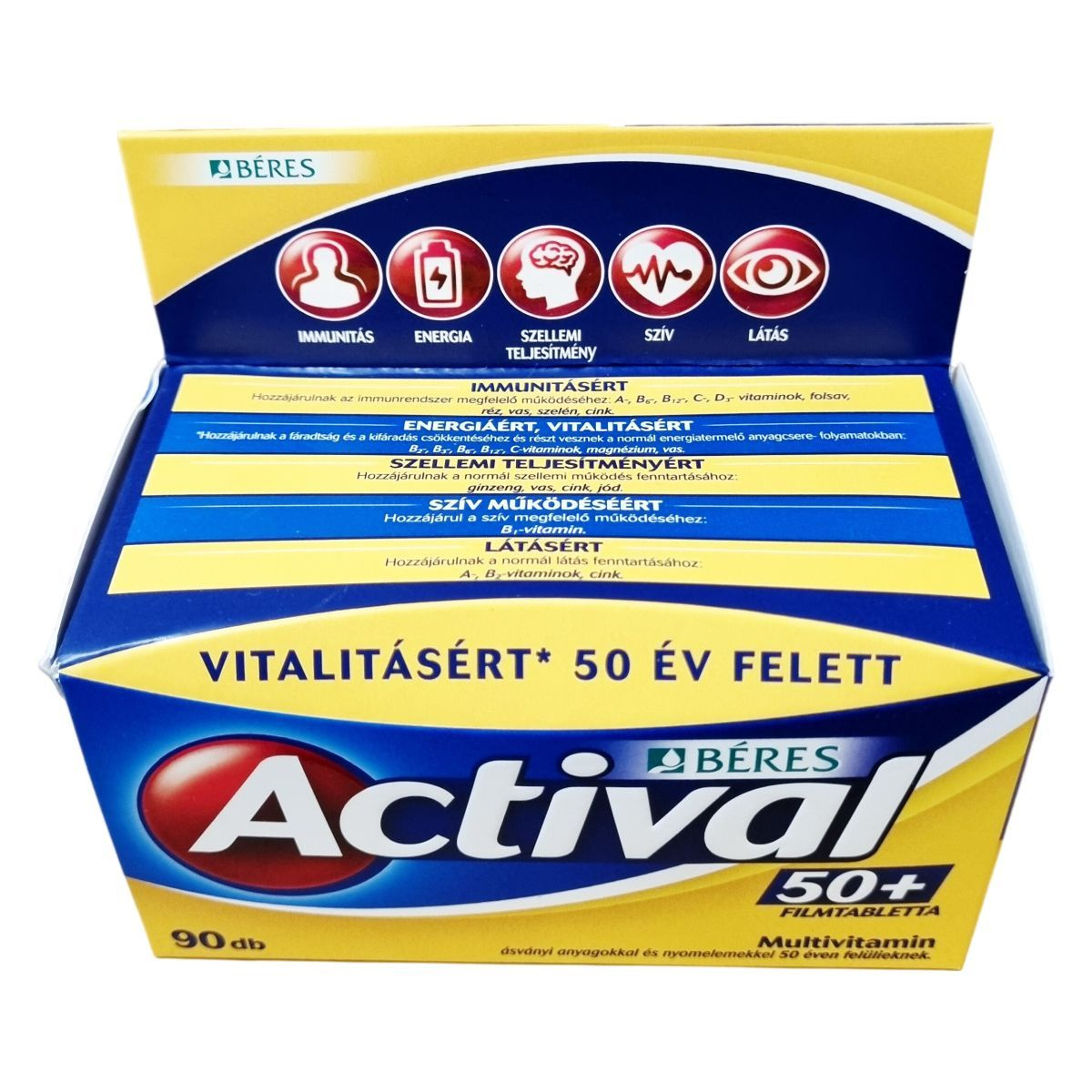 Az Actival 50+ filmtabletta komplex étrend-kiegészítő multivitamin ásványi anyagokkal és nyomelemekkel 50 éven felülieknek.