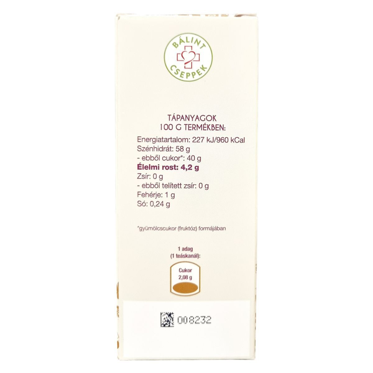 Szénhidrát: 58 g, ebből cukrok: 40 g