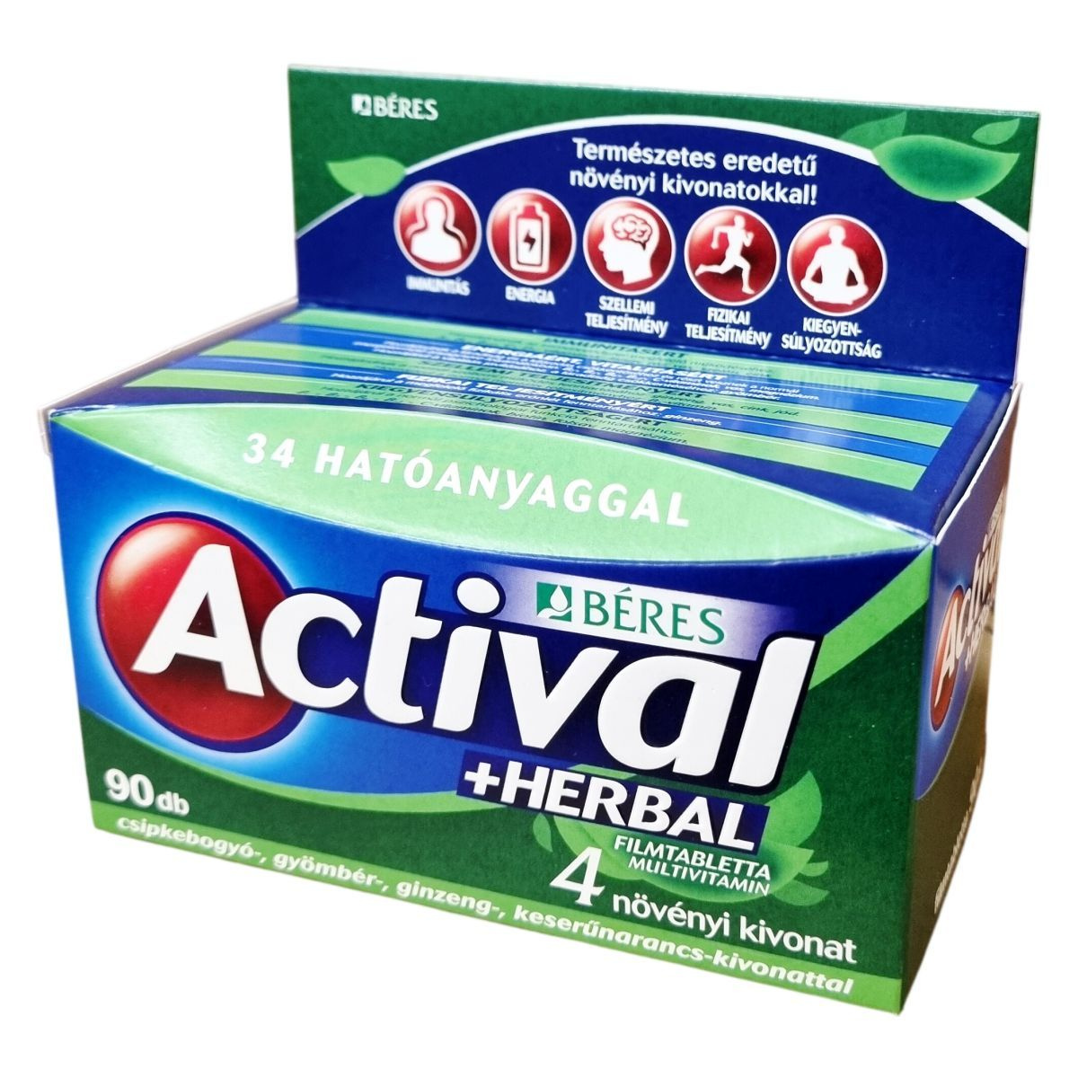 Az Actival +Herbal filmtabletta komplex étrend-kiegészítő, amely multivitaminokat, ásványi anyagokat, növényi kivonatokat, rutint, likopint és luteint tartalmaz. Négy növényi kivonattal, csipkebogyó-, gyömbér-, ginzeng- és keserűnarancs-kivonattal készült. Hatóanyagai hozzájárulnak a felnőtt szervezet vitamin-, ásványi anyag- és nyomelem-szükségletének ellátottságához. A termék támogatni segítheti az immunrendszer működését, energiaszint fenntartását, szellemi és fizikai teljesítményt, valamint a kiegyensúlyozottságot. Felnőttek számára ajánlott napi 1 filmtabletta formájában, étkezés után.