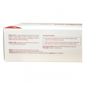 A BioBran 1000 egy Japánban gyártott étrend-kiegészítő, amely rizskorpából készül, és enzimatikusan fejlesztették ki az optimális felszívódás érdekében. A termék poliszacharidokat, proteoglikánokat, például arabinoxilánt és más hemicellulózokat tartalmazhat. A BioBran 1000 vegetáriánusok számára is alkalmas, és nem tartalmaz genetikailag módosított összetevőket. A terméket az EU-ba a DHD(Europe) Ltd. importálja. A termék 105 tasakot tartalmaz, mindegyik tasak 1000 mg MGN-3 Arabinoxylan vegyületet tartalmaz. A termék használata során fontos, hogy ne lépje túl az ajánlott adagot, és ne használja a változatos étrend helyettesítésére.