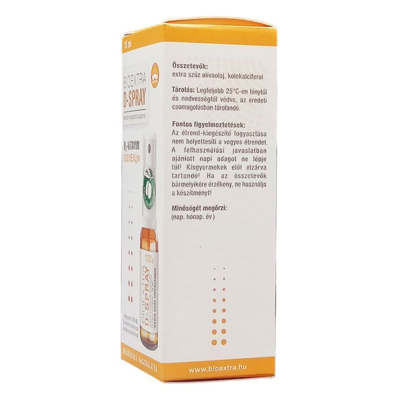 Összetevők: extra szűz olívaolaj és kolekalciferol (D3-vitamin). Felhasználási javaslat: Felnőtteknek naponta 1x1 fújás közvetlenül a szájba. 1 adag megfelel 1000 NE D3-vitaminnak. Magasabb D-vitamin beviteli igény esetén 1x2 fújás közvetlenül a szájba. 2 adag megfelel 2000 NE D3-vitaminnak.