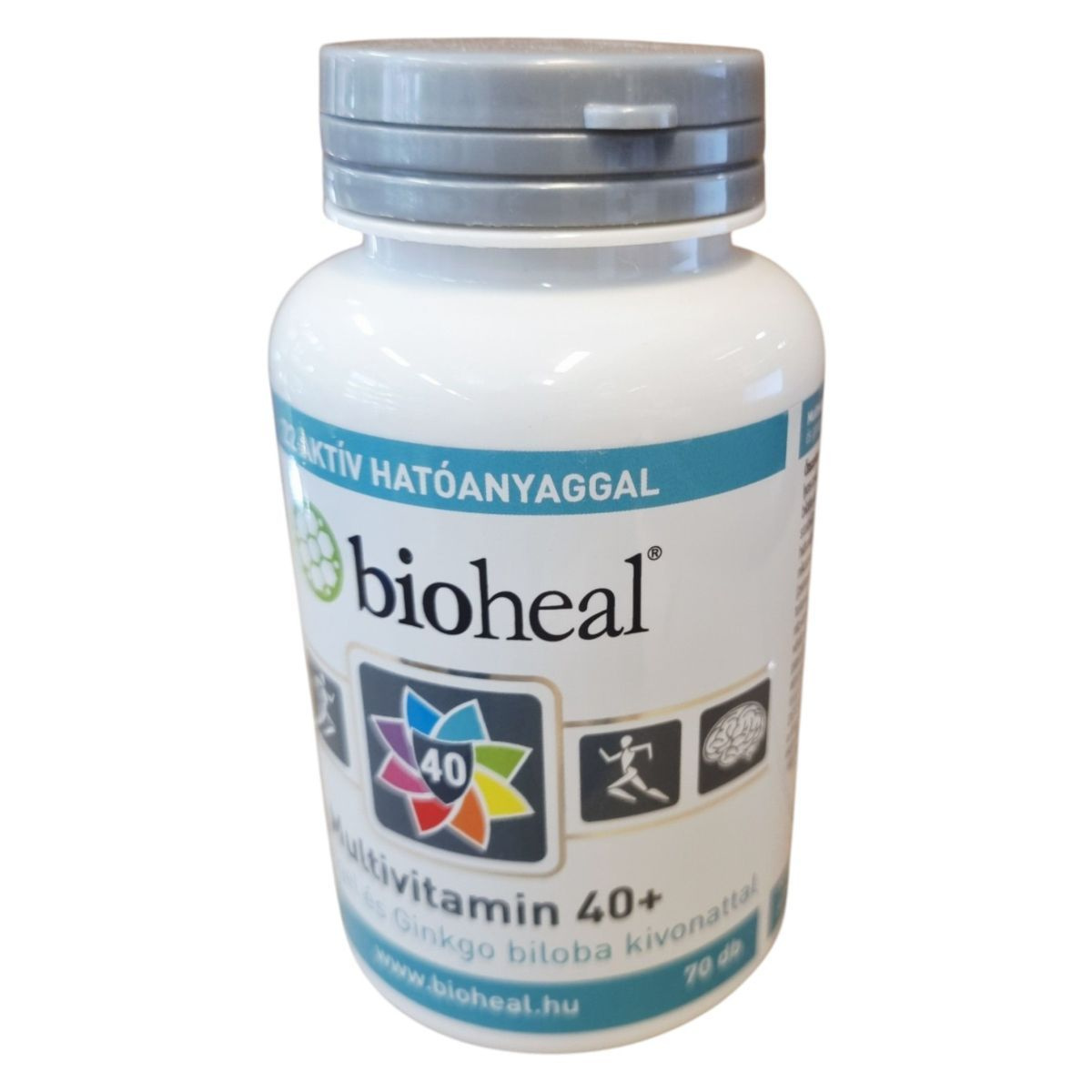 A bioheal Multivitamin 40+ egy speciálisan 40 év felettiek számára kifejlesztett étrend-kiegészítő, amely 22 aktív hatóanyagot tartalmazhat, köztük vitaminokat, ásványi anyagokat, valamint ginkgo biloba és ginzeng kivonatot. Ezek az összetevők hozzájárulhatnak a szervezet egészséges működéséhez, és támogathatják az általános jólétet. A termék napi egy filmtabletta formájában fogyasztható, és fontos, hogy a napi ajánlott mennyiséget ne lépje túl. A termék tárolása száraz helyen, legfeljebb 25 °C-on javasolt.