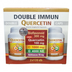 A DOUBLE IMMUN QUERCETIN kapszula quercetint és echinaceát tartalmaz, amelyek polifenol tartalmuk révén hozzájárulhatnak az immunrendszer támogatásához. A D- és C-vitamin segíthet az immunrendszer normál működésének fenntartásában.
