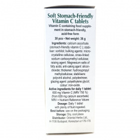 A termék savmentes, gyomorkímélő formában tartalmaz C-vitamint, amely segítheti az immunrendszer működését és hozzájárulhat a szervezet normál működéséhez.