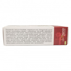 kalcium-foszfátok, magnézium-oxid, isomalt, mikrokristályos cellulóz, L-aszkorbinsav, cink-szulfát, nátrium-karboxi-metil-cellulóz, hidroxi-propil-metil-cellulóz, polivinilpirolidon, polietilénglikol, vas-fumarát, dl-alfa-tokoferil-acetát, maltodextrin, koenzim Q10, nikotinamid, kalcium-karbonát, talkum, zsírsavak magnézium sói, rezveratrol, likopén, kalcium-pantotenát, bórsav, lutein, all-transz-retinyl-acetát, réz-glükonát, rutin, titán-dioxid, vas-oxid sárga, vas-oxid vörös, mangán-szulfát, kolekalciferol, piridoxin-hidroklorid, riboflavin, tiamin-mononitrát, fitomenadion, folsav, kálium-jodid, króm-klorid, nátrium-szelenit, ammónium-molibdenát, biotin, cianokobalamin