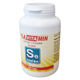 A FLA VITA MIN NATUR+POWER TAURIN étrend-kiegészítő kapszula taurinból, szelénből és bioflavonoidokat tartalmazó polifenol-komplexből áll, amely többféle gyümölcshéj és mag szárítmányából készül. A termék szelén tartalma hozzájárulhat a sejtek oxidatív stresszel szembeni védelméhez, illetve támogathatja az immunrendszer normál működését. Az ajánlott napi adag 3 kapszula, mely összesen 800 mg taurint, 200 mg zöld teát, valamint 55 µg szelént tartalmaz, továbbá 16,6 mg összes polifenolt, ebből 11,6 mg flavonoidot és 0,008 mg resveratrolt. A kapszula HPMC alapú, cink-oxidot, sűrítőanyagot és emulgeálószert is tartalmaz. A terméket kisgyermekektől el kell zárni, az ajánlott adagot nem szabad túllépni, mivel az étrend-kiegészítő nem helyettesíti a kiegyensúlyozott étrendet és az egészséges életmódot.