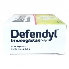 A Defendyl Imunoglukan P4H® kapszula 30 darabos kiszerelésű készítmény, mely IMG®-et (laskagombából izolált pleurán), C-vitamint és cinket tartalmaz. A vitaminok a napi beviteli referenciaérték szerint segíthetik az immunrendszer normál működését. A termék vegetáriánusok számára is alkalmas. Az adagoláskor ügyelni kell arra, hogy a kapszulákat egészben kell lenyelni, és az ajánlott adagot nem szabad túllépni. 6 év alatti gyermekeknek nem javasolt a készítmény használata.