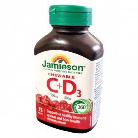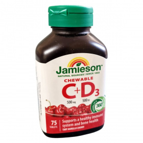 A Jamieson C- és D3-vitamin szopogató tabletta cseresznye ízesítéssel hozzájárulhat az immunrendszer normál működéséhez és az egészséges csontozat fenntartásához. A termék vegetáriánus étrendbe illeszthető.