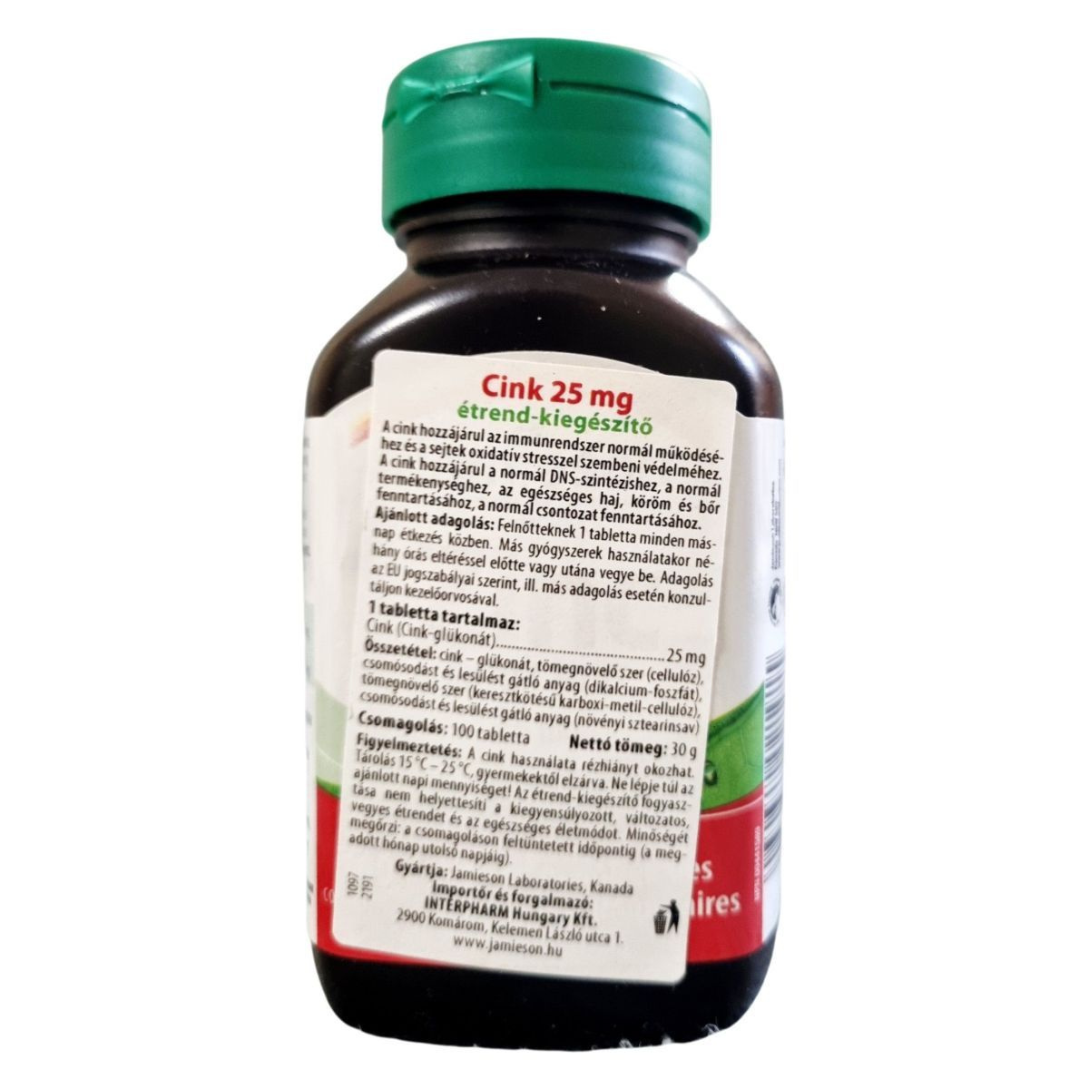 A Jamieson Zinc étrend-kiegészítő Kanadában gyártott termék, amely 100 tablettát tartalmaz. A cink hozzájárulhat az immunrendszer normál működéséhez, a sejtek oxidatív stresszel szembeni védelméhez, valamint a normál DNS-szintézishez és termékenységhez. Támogathatja az egészséges haj, köröm és bőr fenntartását. A termék nem tartalmaz cukrot, keményítőt, glutént, laktózt, mesterséges színezékeket, ízesítőket vagy tartósítószereket, így vegetáriánus étrendbe is beilleszthető. Fontos, hogy a terméket az ajánlott mennyiségben fogyassza, és ne lépje túl a napi adagot. A cink használata rézhiányt okozhat, ezért javasolt a termék szedése előtt konzultálni kezelőorvosával.