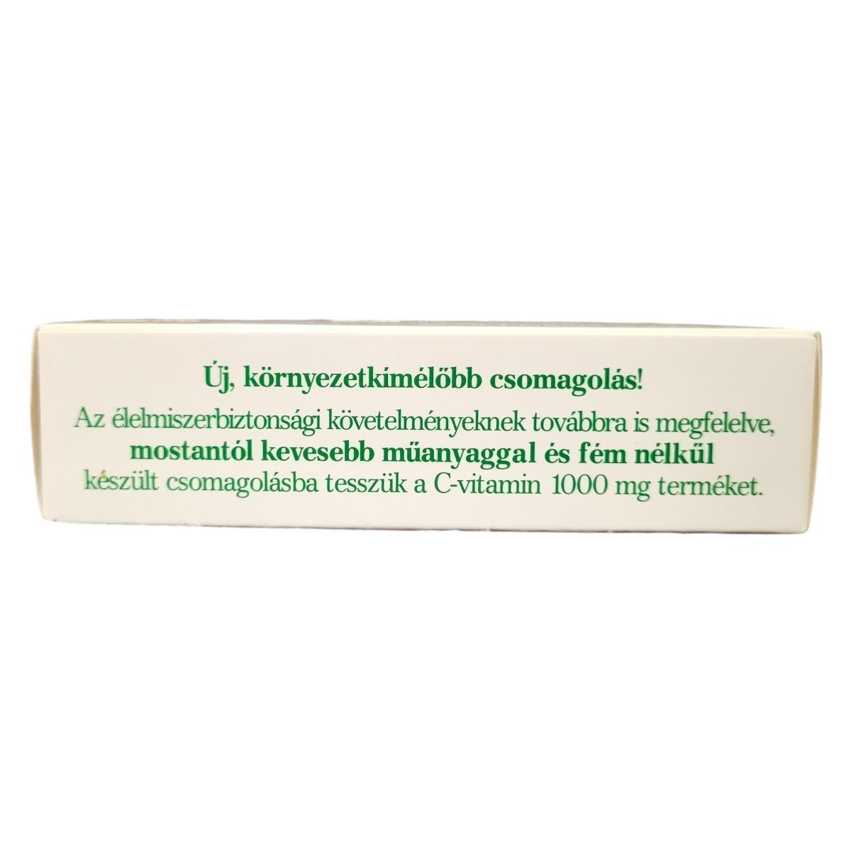 A C-vitamin hozzájárulhat a sejtek oxidatív stresszel szembeni védelméhez, a normál energiatermelő anyagcsere-folyamatokhoz, valamint az immunrendszer és idegrendszer normál működéséhez. Támogathatja a normál kollagén képződést, mely fontos lehet a fogak, fogíny, csontozat, vérerek, bőr és porcok egészségének fenntartásában. A készítmény továbbá segítheti a vas felszívódását. Új, környezetkímélőbb csomagolásban kerül forgalomba, amely kevesebb műanyagot és fémet tartalmaz, miközben megfelel az élelmiszerbiztonsági előírásoknak. A termék 30 db tablettát tartalmaz, mely kezelés során étrend-kiegészítőként alkalmazandó, nem helyettesíti a vegyes étrendet és az egészséges életmódot.