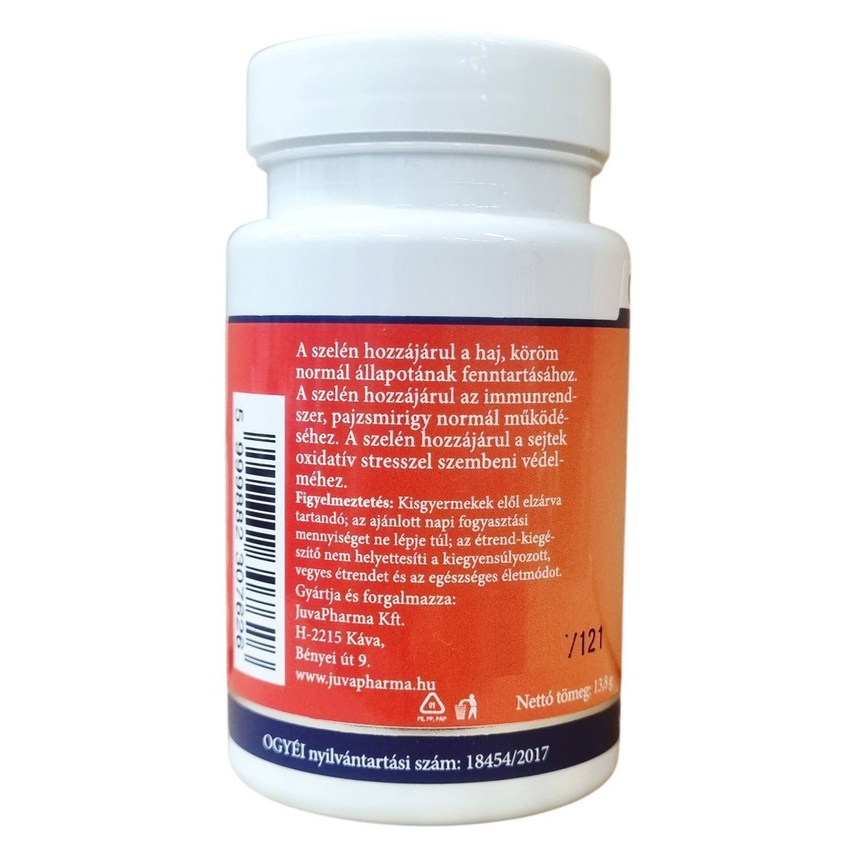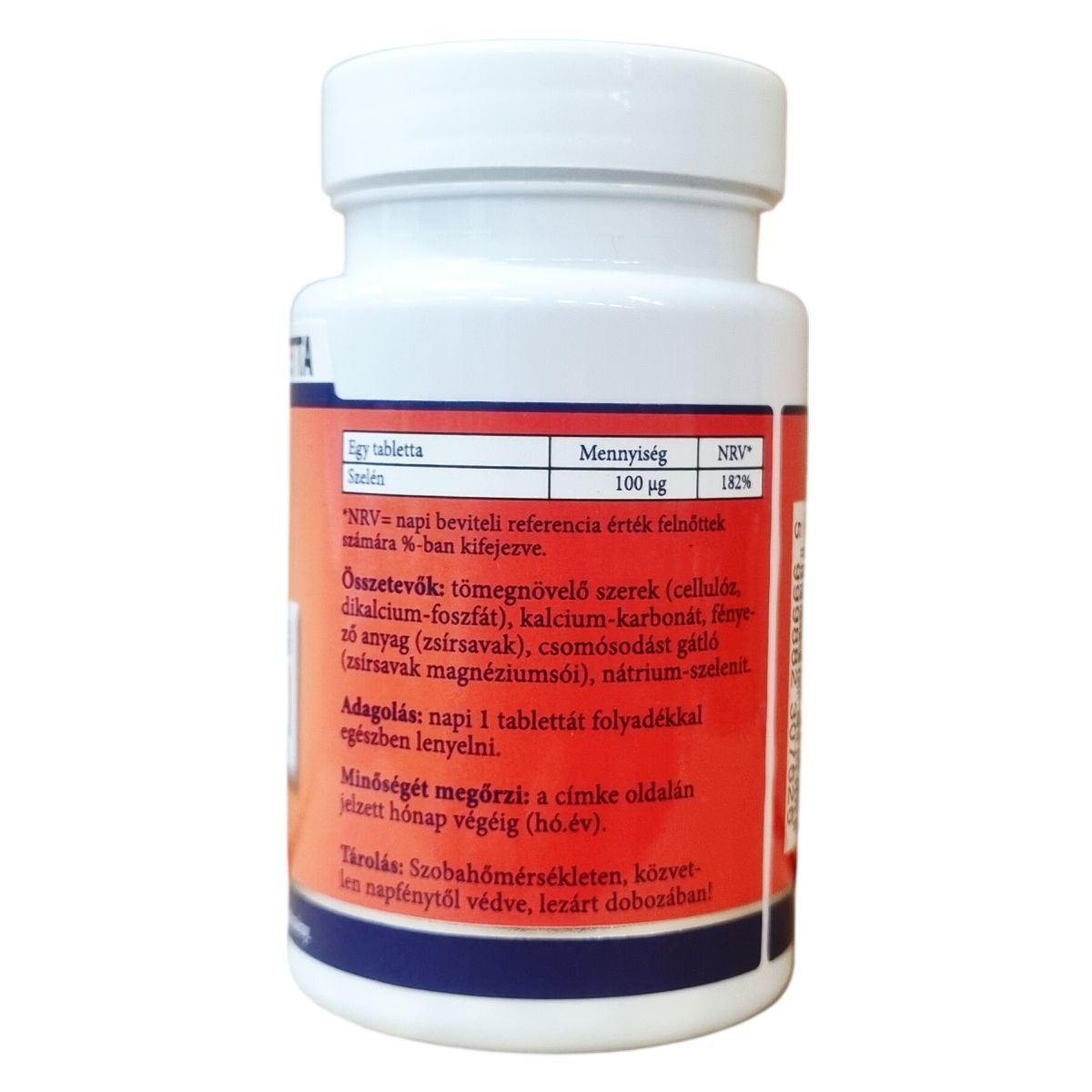 tömegnövelő szerek (cellulóz, dikalcium-foszfát), kalcium-karbonát, fényező anyag (zsírsavak), csomósodást gátló (zsírsavak magnézium sói), nátrium-szelenit
