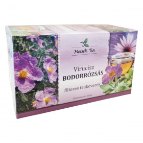 A Virucisz Bodorrózsás filteres teakeverék elkészítése során egy aromazáró tasak tartalmát 2,5 dl forró (100°C) vízzel kell leönteni, majd lefedve 10 percig állni hagyni. A tea frissen elkészítve, de kihűlés után édesítés nélkül szájöblögetésre is alkalmas. A gyógynövények hatóanyagai elősegíthetik a felső légúti megbetegedések leküzdéséhez szükséges ellenállóképesség kialakulását, mérsékelhetik vírusos és bakteriális fertőzések tüneteit, és hozzájárulhatnak a komplex gyógyszeres kezelés eredményességéhez. A termék Nettó tömege 24 g, 20 aromazáró filtert tartalmaz. Mecsek Tea természetesen hat!