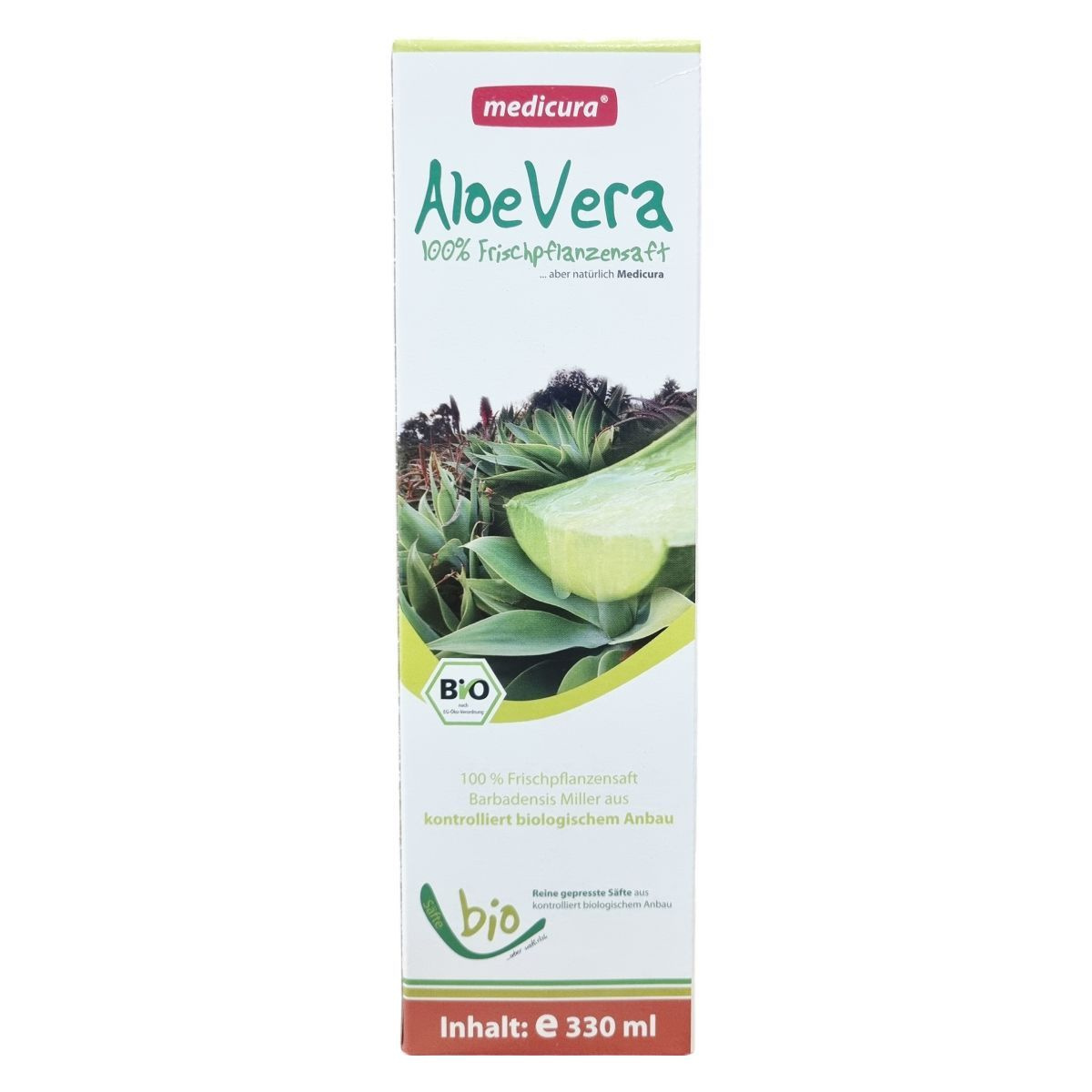 A Medicura Aloe Vera 100%-ban friss növényi lé formájában kínált termék, amely Barbadensis Miller aloe verából készül ellenőrzött biológiai termesztésből, elsősorban Mexikóból származó alapanyagból. A gyártás során szigorú minőségellenőrzést és kíméletes feldolgozást alkalmaznak a magas minőség biztosítása érdekében. A termék fő összetevője a 99,8%-os aloe vera lé. A csomagolás környezetbarát FSC tanúsítvánnyal rendelkező, vegyes forrásból származó anyagokból készül, amely elősegítheti a fenntartható erdőgazdálkodást. Az ajánlott napi adag háromszor 20 ml, amely önmagában vagy más italokhoz keverve fogyasztható. A termék tárolásánál fontos betartani a hűtést felbontás után, valamint a gyors fogyasztást a minőség megőrzése érdekében. A termék kizárólag biológiai gazdálkodásból származó összetevők felhasználásával készül, és a német-biológiai szabványoknak megfelelő engedélyekkel rendelkezik, melyeket a megfelelő hatóságok ellenőriznek és tanúsítanak.
