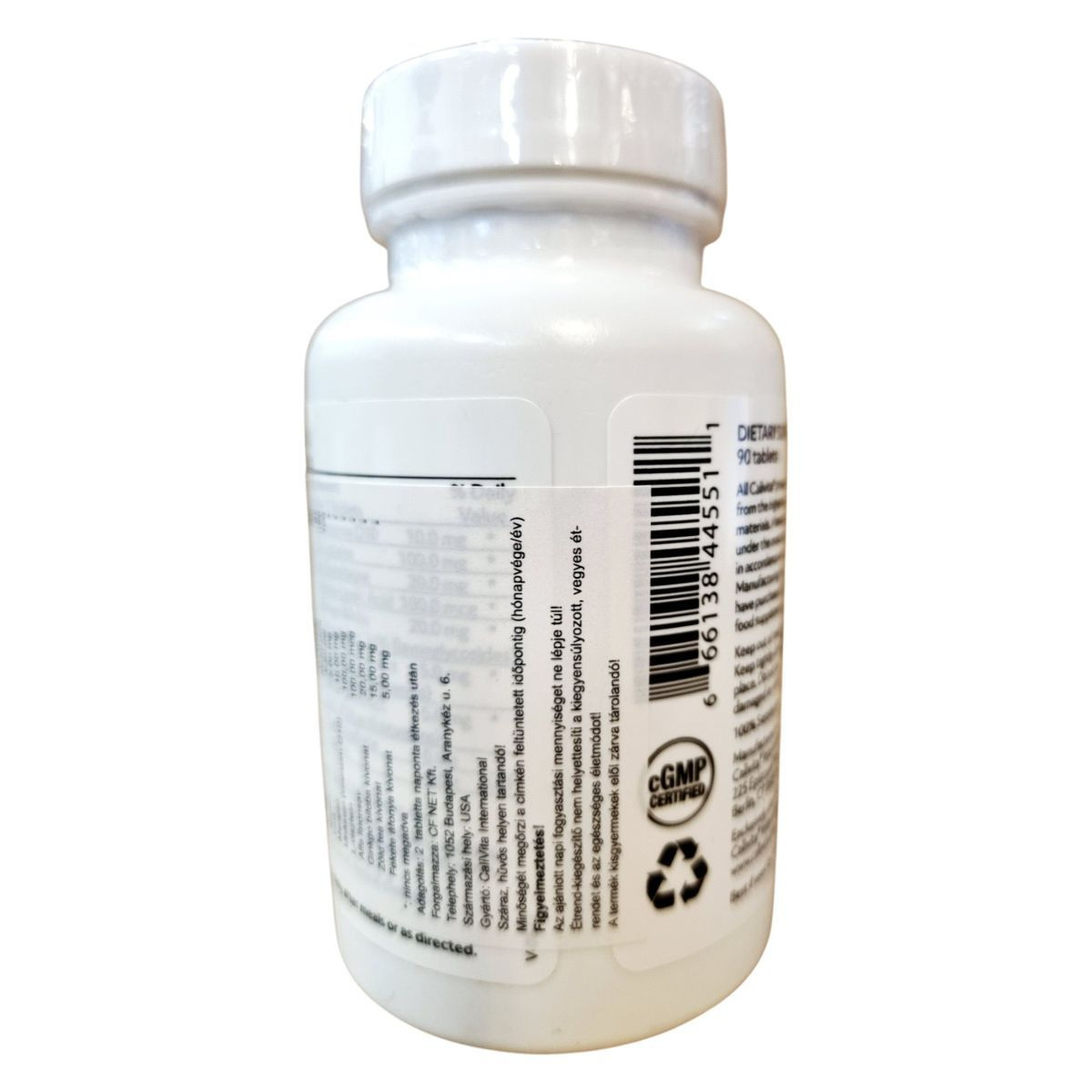 Kalcium-karbonát, stabilizálószer (mikrokristályos cellulóz), C-vitamin, E-vitamin (DL-alfa-tokoferil-acetát 50%), L-aszkorbinsav, csomósodásgátló (nátrium-karboxi-metil-cellulóz), magnézium-oxid, mangán-glukonát, zöldtea kivonat, szőlőmag kivonat, fekete áfonya kivonat, alfa liponsav
