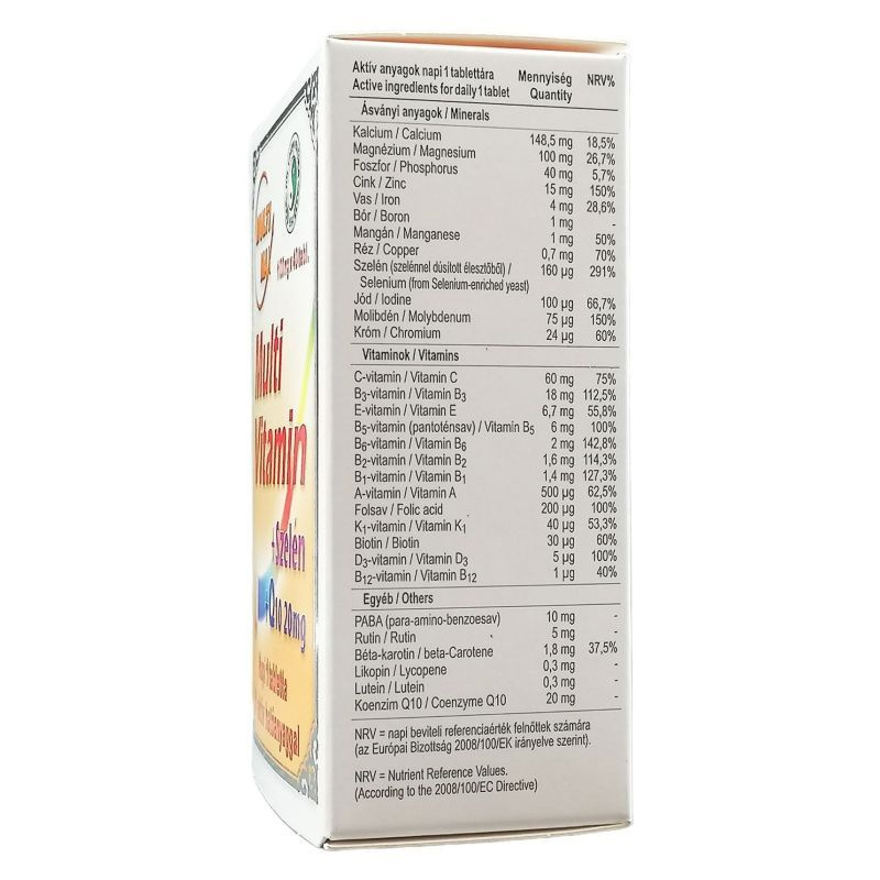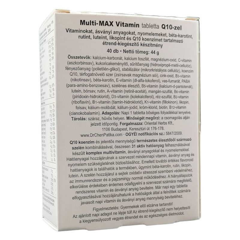 Ez a készítmény napi egyetlen tablettában tartalmazza az emberi szervezet napi vitamin- és ásványianyag-igényének túlnyomó részét kielégítő 30 féle hatóanyagot, s emellett megnövelt mennyiségű (20 mg) Q10-et, amely a sejtek természetes üzemanyagaként jelentős mértékben elősegíti a tápanyagok hatékony hasznosulását.