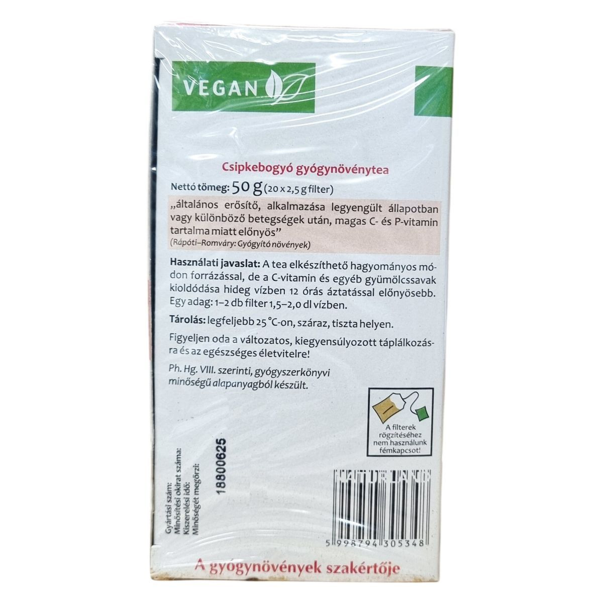 A csipkebogyó gyümölcse gazdag vitaminokban, különösen C-vitaminban, ami fontos a szervezet védekezőképessége szempontjából. A tea elkészítése során a szárított gyümölcsöket forrázzák le, így kioldódnak belőlük az értékes tápanyagok. Az ital színe és íze kellemesen frissítő, ami tökéletes választás lehet akár reggel, akár délutáni pihenéshez.