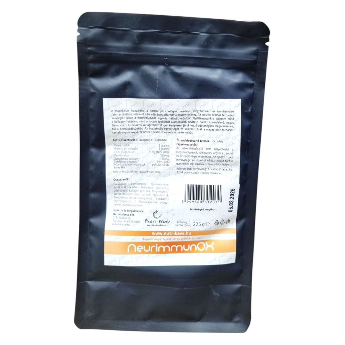 A neurimmunOX egy különleges, kávékhoz és bizonyos teafélékhez adható gyógynövény-gomba- és tápanyag-keverék, amely nem tartalmaz instant kávét. A termék speciális összetevői, mint a magnézium, inositol, kollagén és rostok, értékes tápanyagokat biztosíthatnak, miközben nem befolyásolják a kávé ízét. A magnézium hozzájárulhat a normál pszichológiai, mentális, idegrendszeri és izomfunkciók fenntartásához, valamint a fáradtság és kifáradás csökkentéséhez. Az inositol szinergiát alkothat a magnéziummal, egymás hatását erősítve. A termék különlegességét a magas poliszacharid tartalmú gombakeverék növelheti tovább.