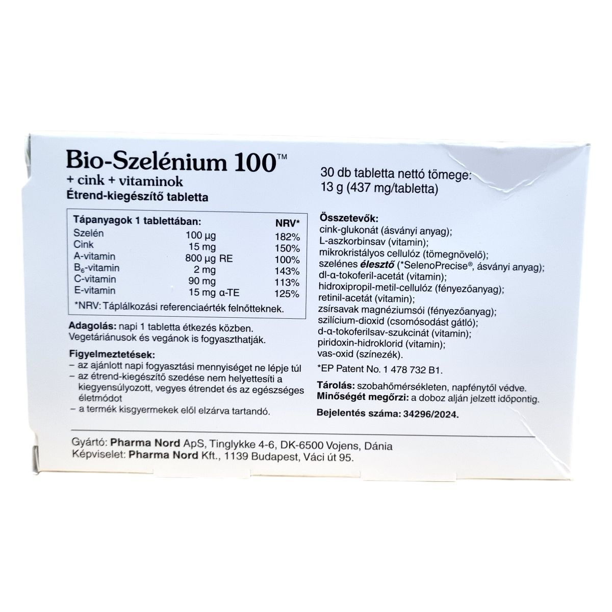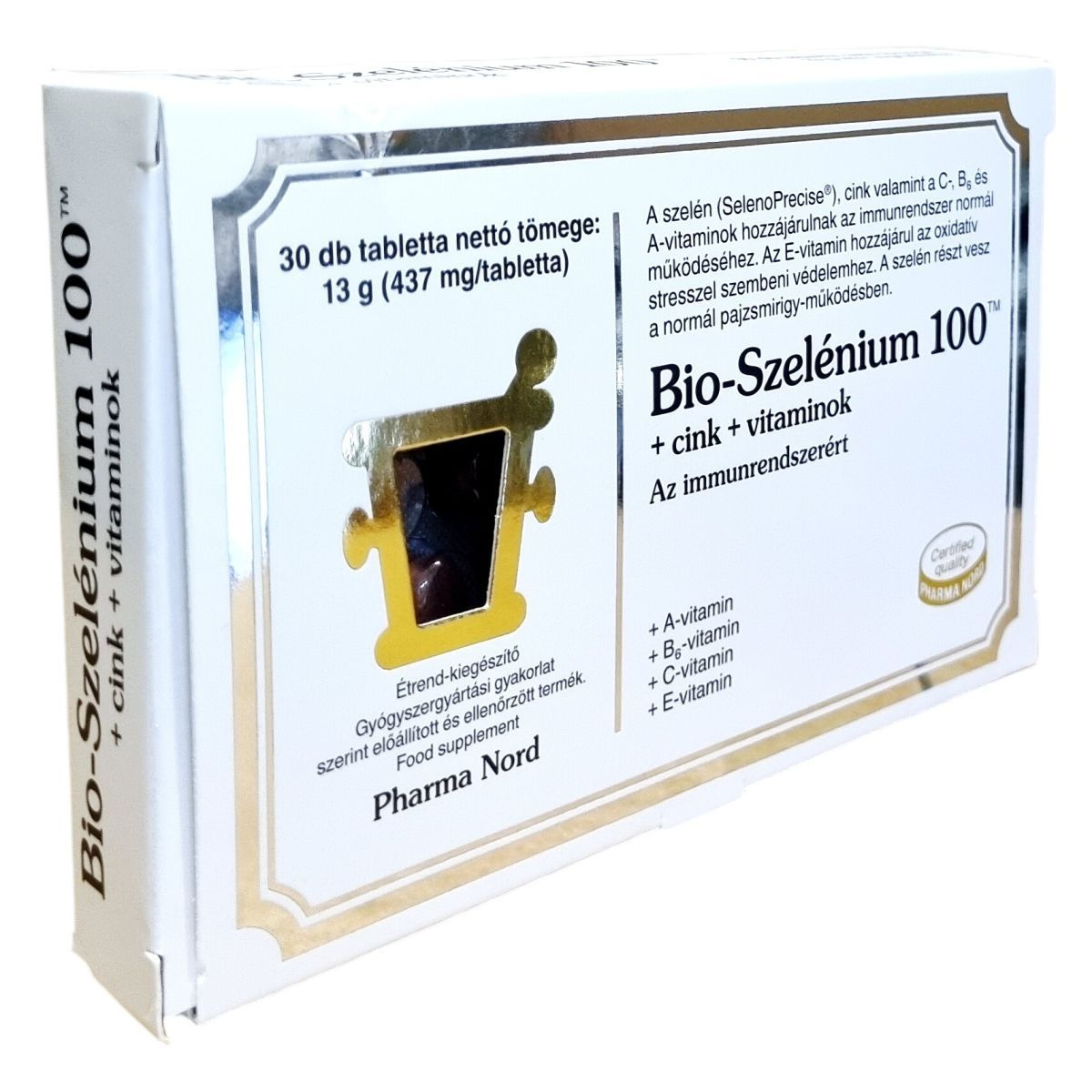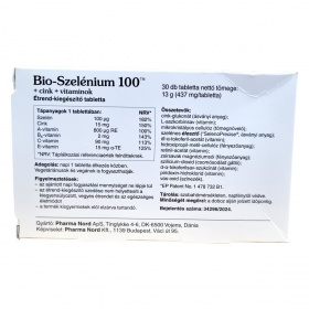 A Bio-Szelénium 100™ egy étrend-kiegészítő, amely szelént, cinket és különböző vitaminokat tartalmaz, mint például A-, B6-, C- és E-vitamin. Ezek az összetevők hozzájárulhatnak az immunrendszer normál működéséhez, az oxidatív stresszel szembeni védelemhez, valamint a normál pajzsmirigy-működéshez. A termék gyógyszergyártási gyakorlat szerint előállított és ellenőrzött, vegetáriánusok és vegánok is fogyaszthatják. A tabletták 30 darabos kiszerelésben kaphatók, és napi egy tabletta fogyasztása ajánlott étkezés közben.